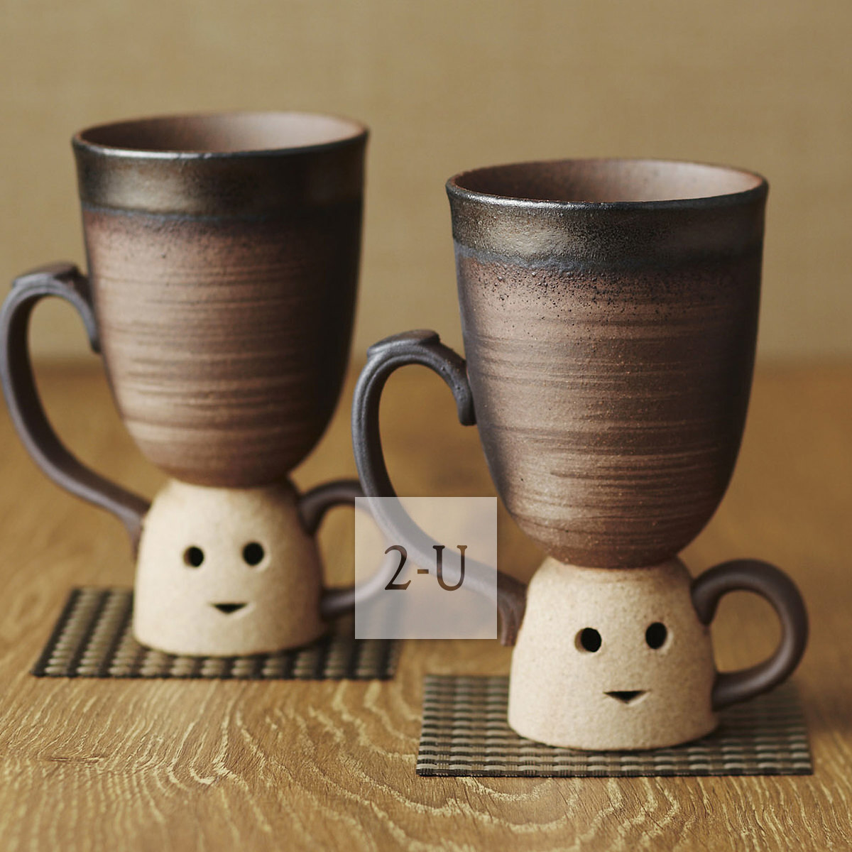 商品 : 帶底座陶俑杯 (約Φ10xH9.8cm) x 2, 杯墊 x 2 材質 : 陶 (日本萬古燒) 禮盒包裝 : 約 200 x 100 x 100 mm, 約 1 kg MADE IN JAPAN