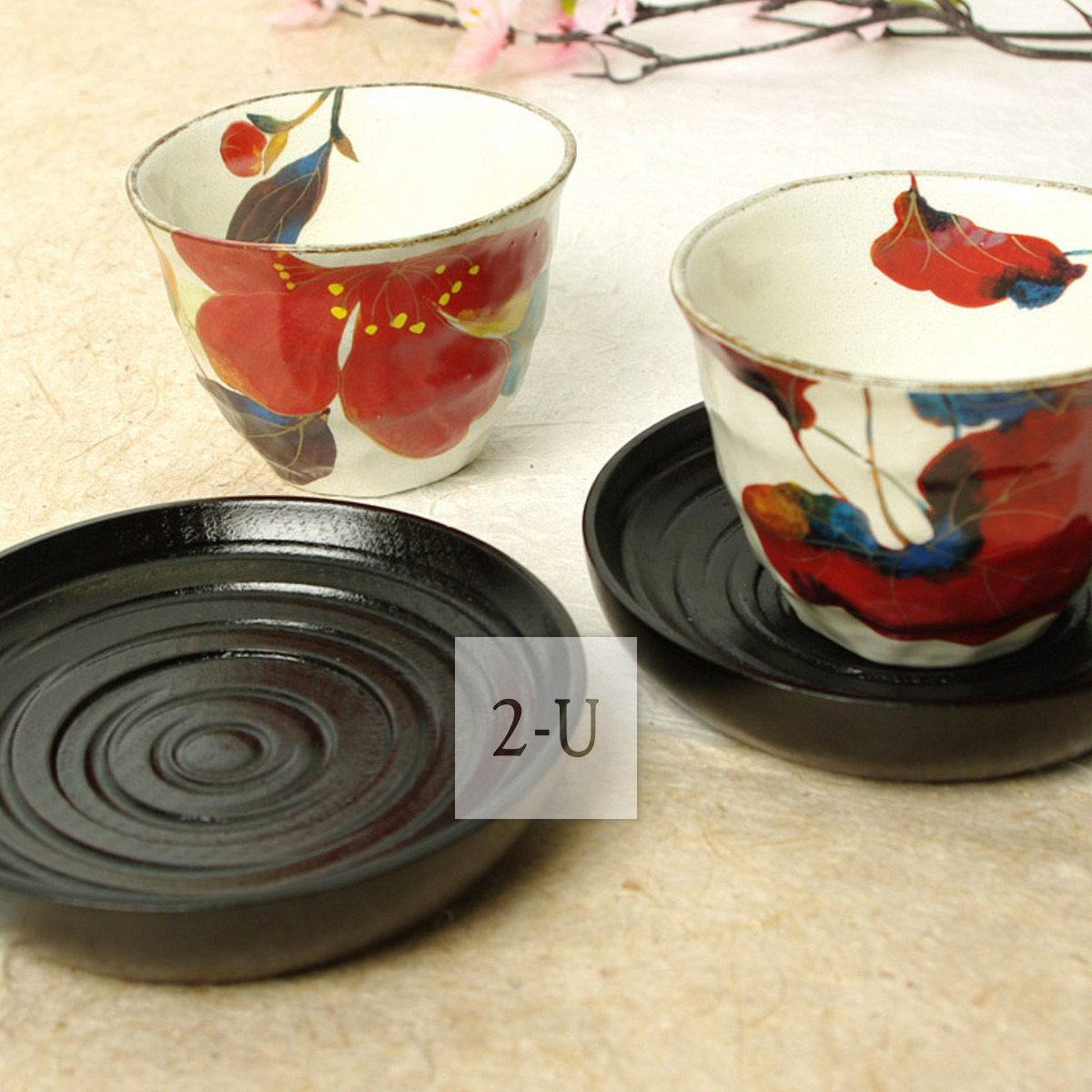 商品 : 茶碗 (約Φ9xH6.7cm) x 2, 茶託 (約Φ12.5xH2.5cm) x 2