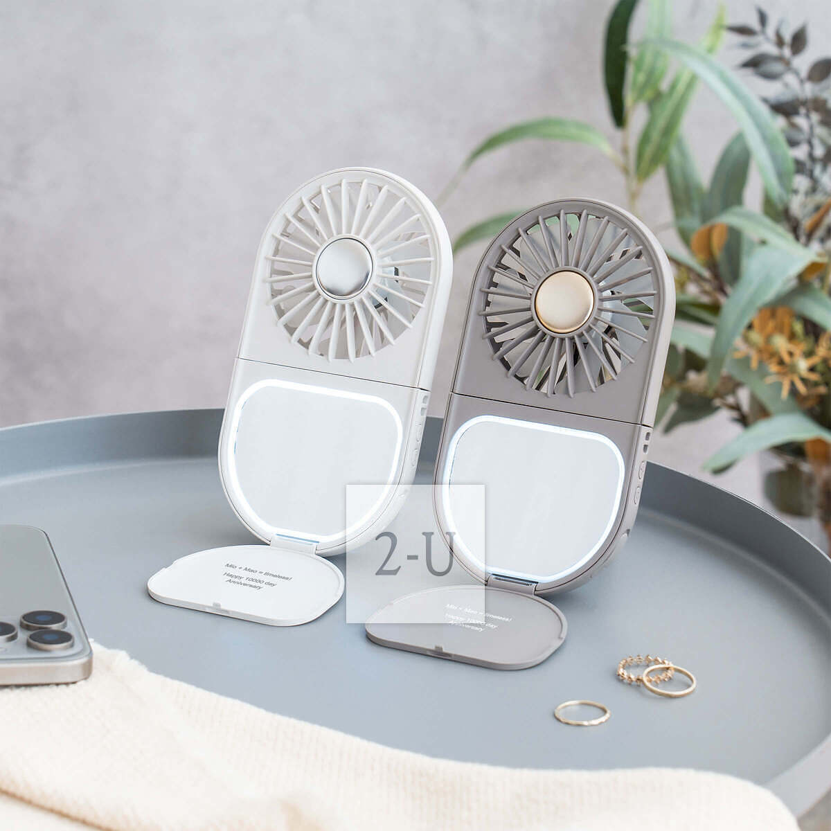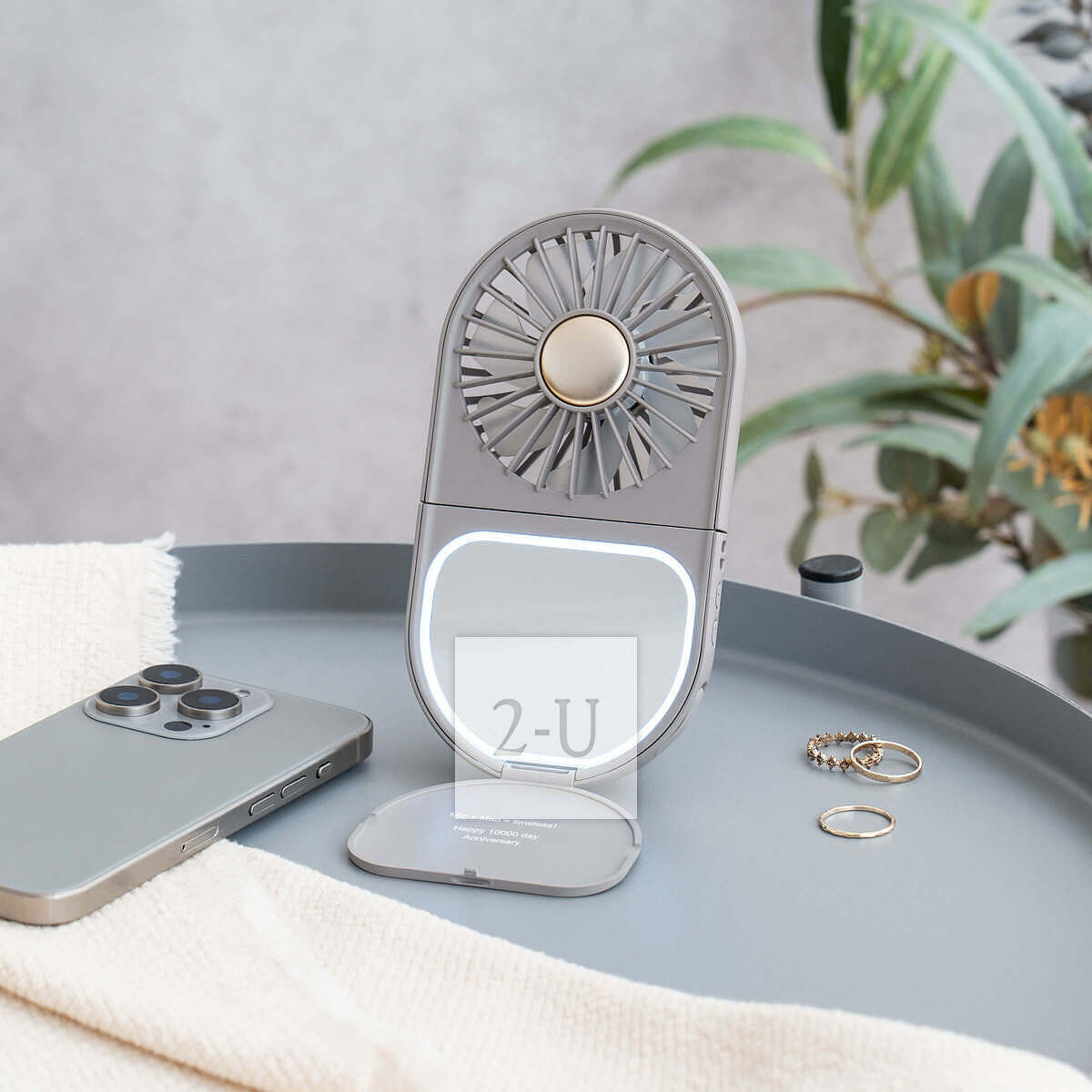帶LED化妝鏡的縴巧便攜風扇 灰色 系列