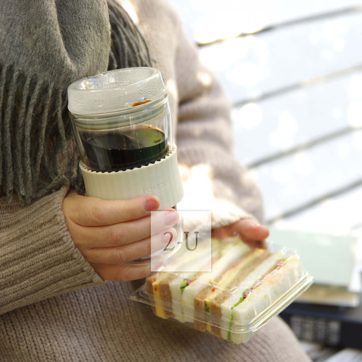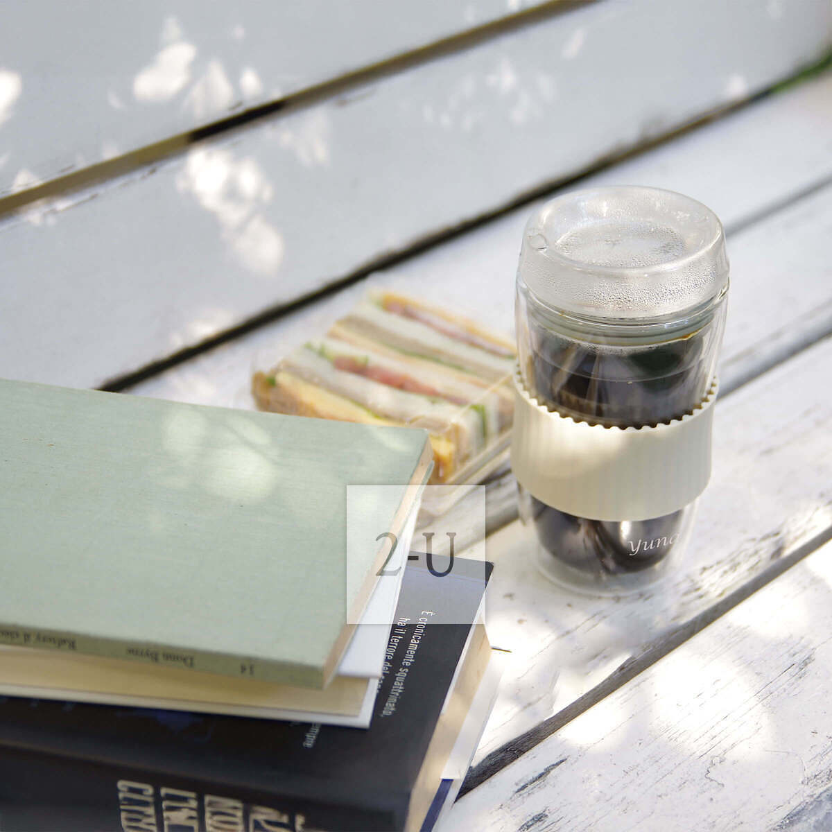 帶蓋玻璃雙層隔熱隨行杯 象牙白 系列