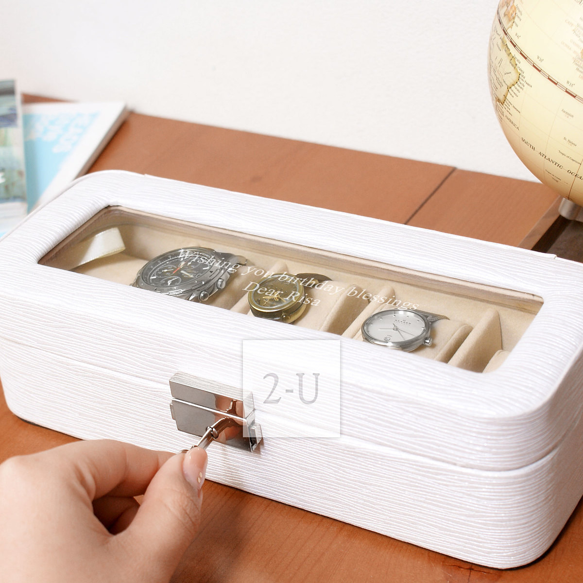 手錶收納盒 白色 S 個性化定製客製化 DIY 的彫刻名字祝福的具有創意的個性禮物/禮品/賀禮/紀唸品。