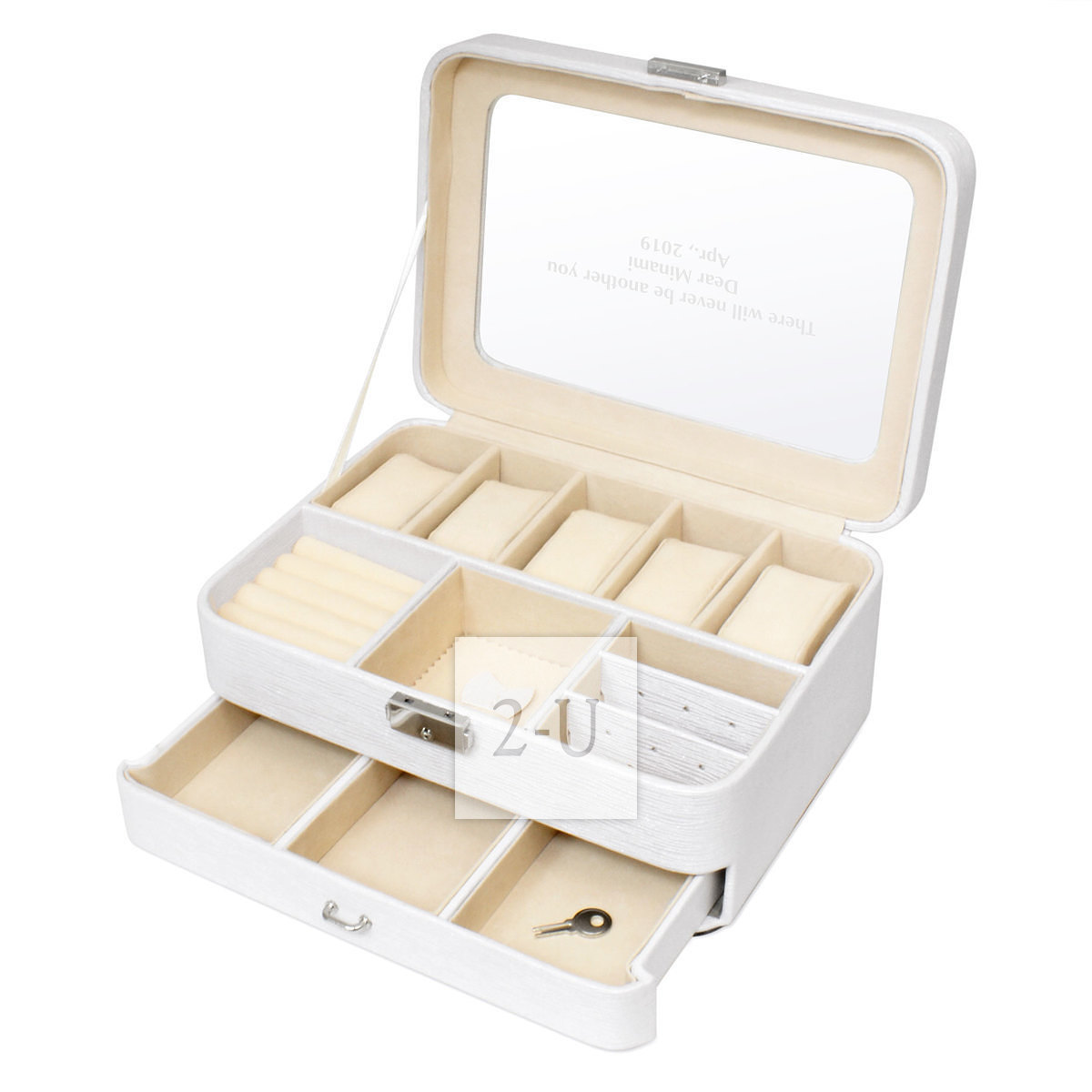 雙層首飾盒手錶盒 白色 個性化定製客製化 DIY 的彫刻名字祝福的具有創意的個性禮物/禮品/賀禮/紀唸品。