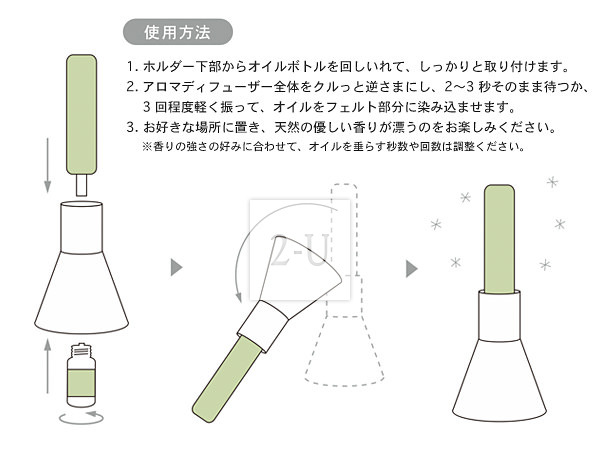 可以不使用電、熱而在任何喜好的時候使用香熏的便利 arobockle 精油香熏器。內側放入精油瓶以後再倒過來、手工製作的羊毛蓋吸收暸精油後、就可以享受悠然的香味暸。不用電、不用熱既可以放床頭、桌邊案頭、孩子房間、玄關、洗面檯、衛生間、室外等等。各處都可以。