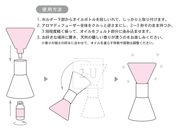 可以不使用電、熱而在任何喜好的時候使用香熏的便利 arobockle 精油香熏器。內側放入精油瓶以後再倒過來、手工製作的羊毛蓋吸收暸精油後、就可以享受悠然的香味暸。不用電、不用熱既可以放床頭、桌邊案頭、孩子房間、玄關、洗面檯、衛生間、室外等等。各處都可以。