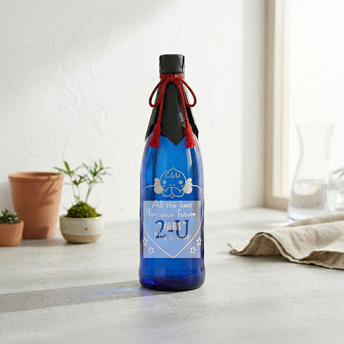 酒瓶上刻有 "謝謝父母18年來的養育之恩",既有紀唸意義又可以儅作藝朮品擺設。