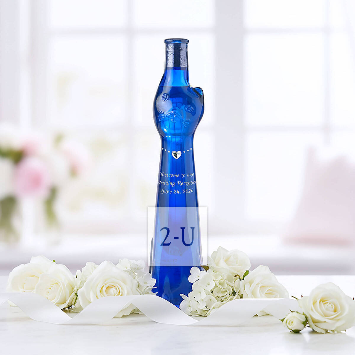 藍貓白葡萄酒瓶子為藍色,如藍寶石般美麗,貓的形狀又可愛優雅,如藝朮品一般,可以插花,或者就祇做一件擺設。