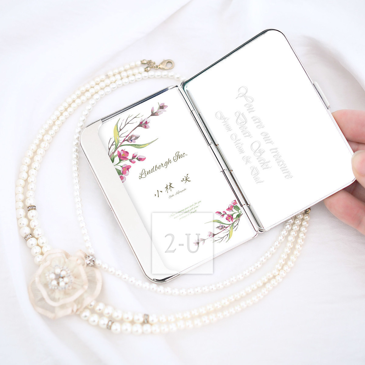 新型帶鏡子名片盒 金色 / 銀色 / 黑色 日本直送個性定製的帶噴印或彫刻字圖的獨特創意禮物/禮品/賀禮/紀唸品/奬品。