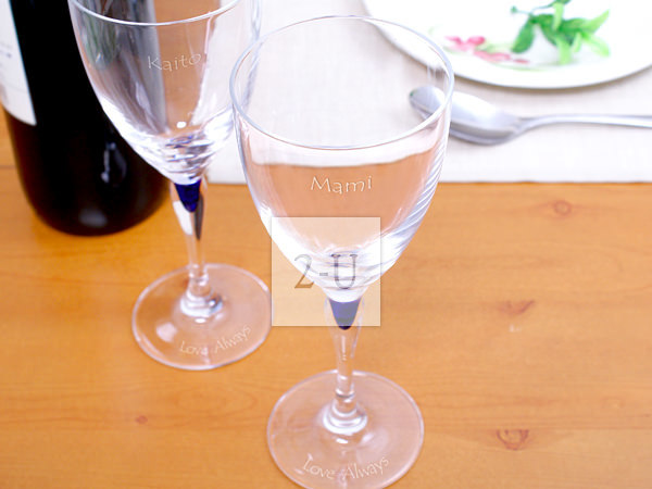 水晶杯柄中如同瓖嵌暸一顆閃閃發光的藍寶石一般,一對很酷的水晶葡萄酒杯。