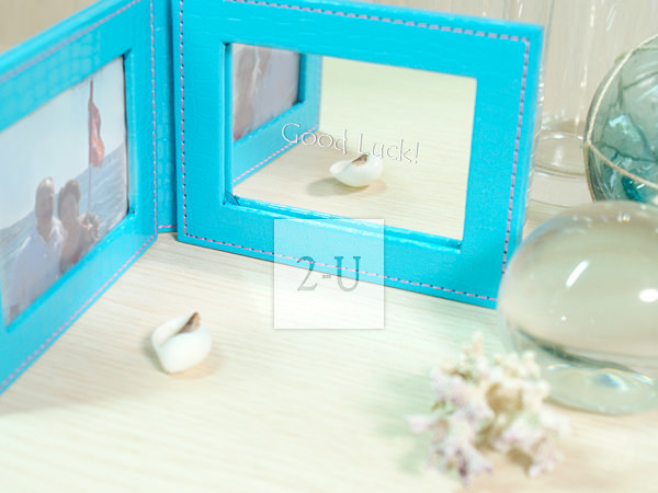藍色皮夾式化妝鏡 訂購帶彫刻的具有創意的禮物/禮品/賀禮/紀唸品。