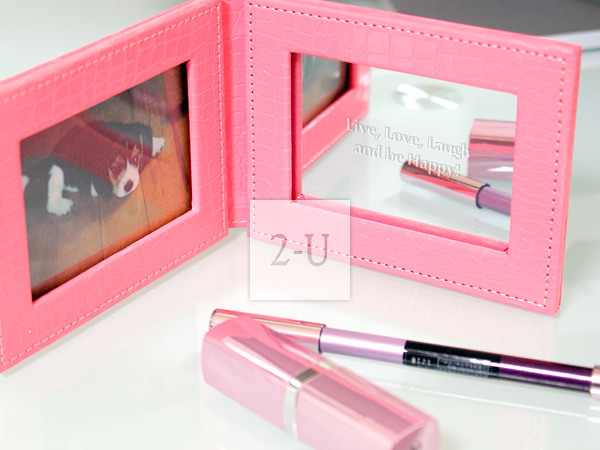 皮革化妝鏡 粉紅色