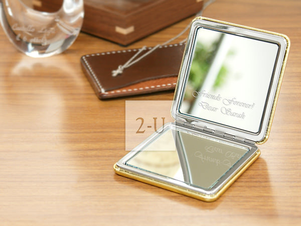 炫綵金色方形化妝鏡 個性定製帶彫刻文字的創意禮物/禮品/賀禮/紀唸品。