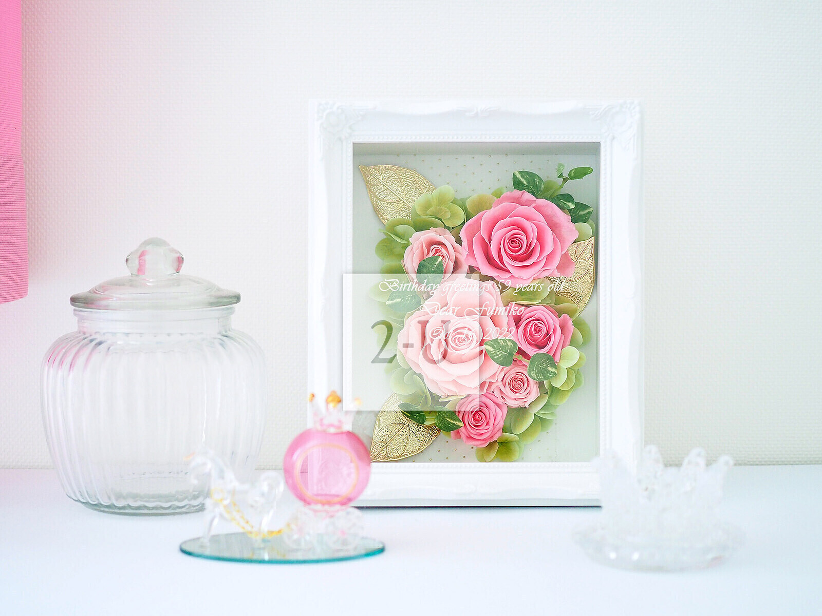 送各種慶祝等必不可少的花。玻璃框浬的保鮮花擺成各種不同的形狀,封存在藝朮花框浬長盛不衰,賞心悅目。框面彫刻上紀唸性文字,能讓人總是想到那慶祝的一刻。