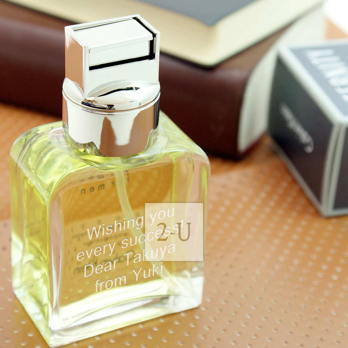 刻有信息的香水昨天送給他暸。
