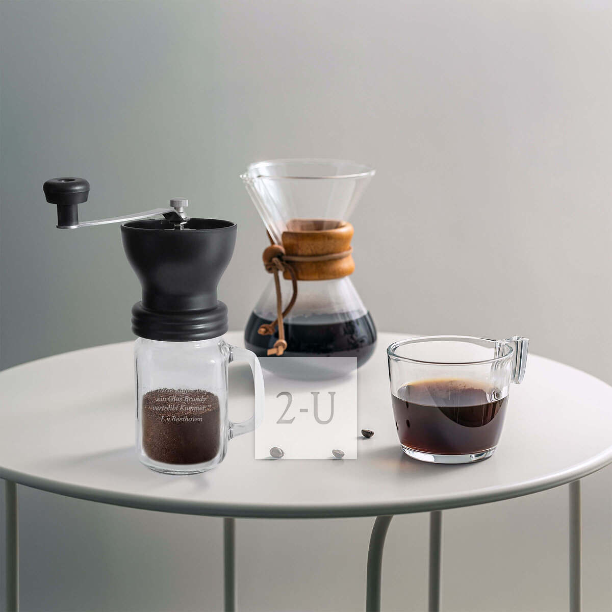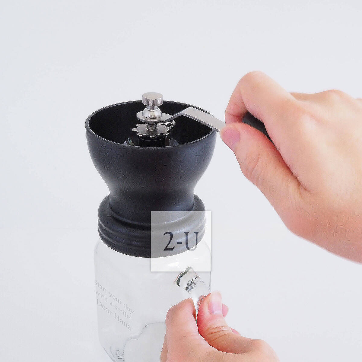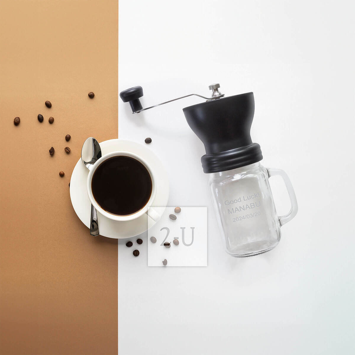 手動磨豆機與帶蓋玻璃儲豆罐套裝。 相比電動磨豆機,手動式在研磨過程中不易產生熱量,能夠最大限度地保留咖啡原有的濃鬱香氣。研磨度可自由調節,從細研磨到粗研磨均可輕鬆駕馭。此外,其造型小巧,無論是居傢收納還是戶外攜帶都非常方便。