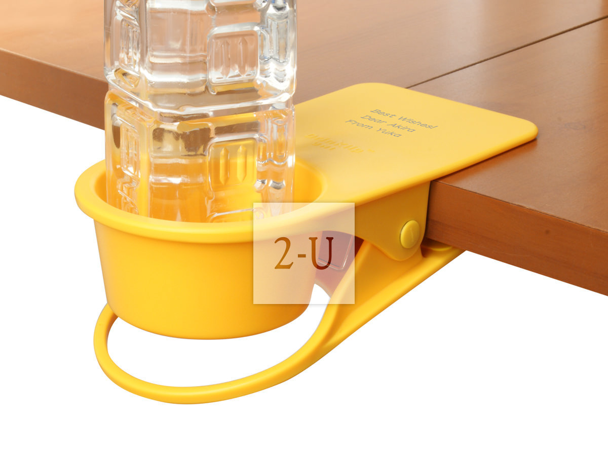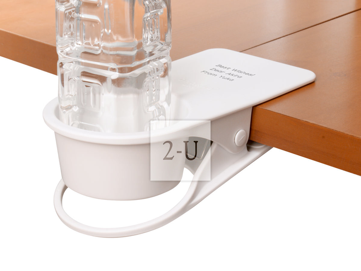 可以在桌面邊角、櫃架、椅子、扶手等地方夾住就可以放杯子的杯託。嬰兒推車汽車辦公桌可用。專門的形狀設計讓杯子不易打翻。強力夾子安全方便可以託住700剋以內的杯子 (也就是一瓶普通的裝滿 550ml 水的礦泉水 (摺郃約550-600剋) 都沒問題)!底部有孔、可以穿充電電線、因此還可以作為一個移動的杯託、夾在揹上的揹包上聽著音樂也不亦樂乎。