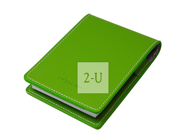 用上好牛皮做成的便箋皮夾。便箋皮夾小巧便于攜帶,還帶有掛筆小圈。 皮夾浬面有內皮蓋,可以夾名片或用過的便箋紙,或者夾用過的便箋部分,一打開就可以直接使用未寫部分,很方便。附屬的便箋用完以後可換市面賣的便箋 (約73 x 105 mm)。