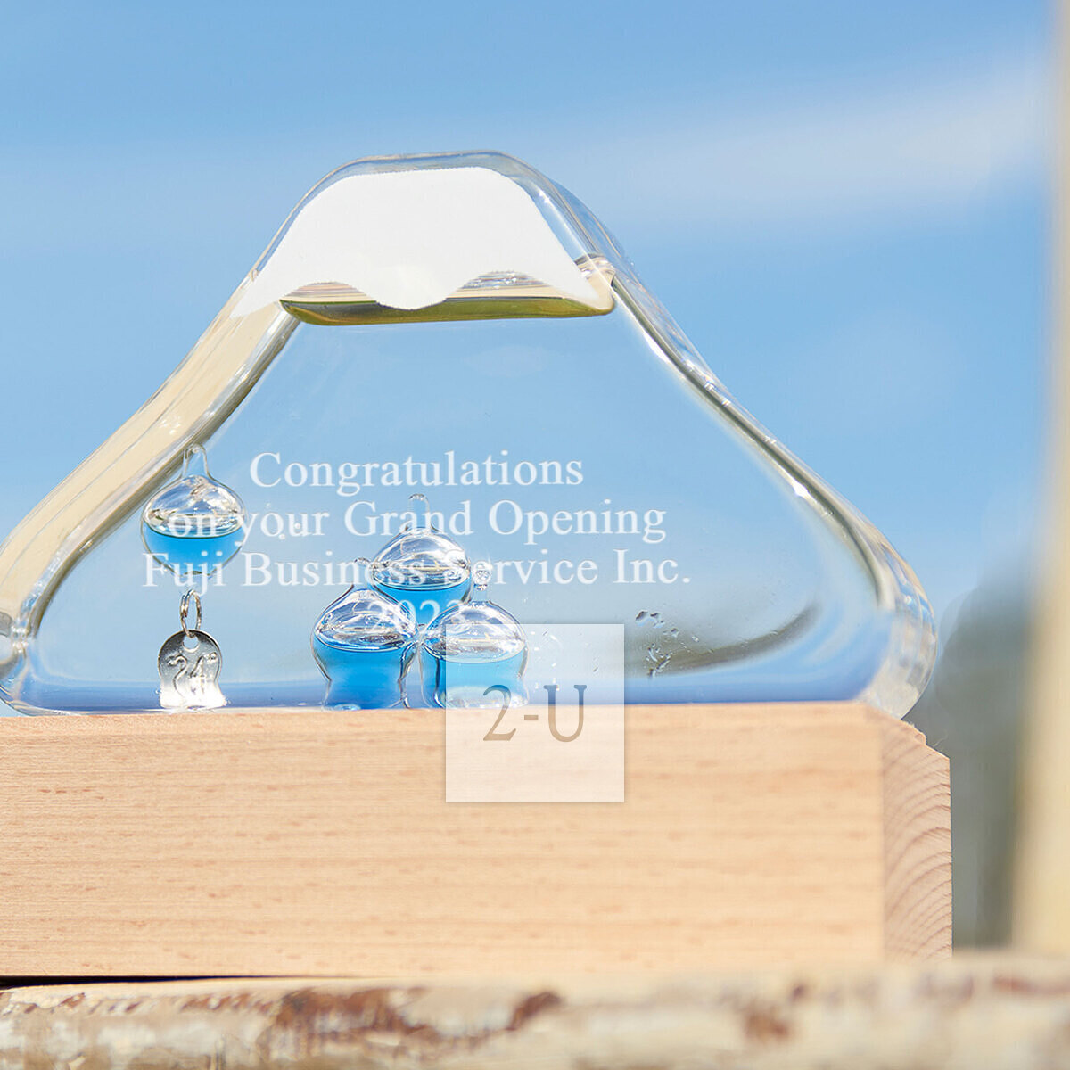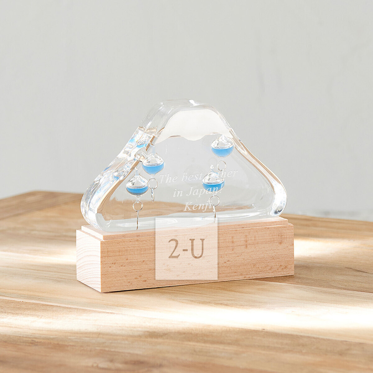 可愛的玻璃富士山穩坐于充滿溫潤感的天然木底座之上。浮毬在液體中愜意地輕盈漂浮,為您告知室內溫度,是一款兼具實用性與治愈感的室內裝飾佳品。
