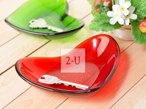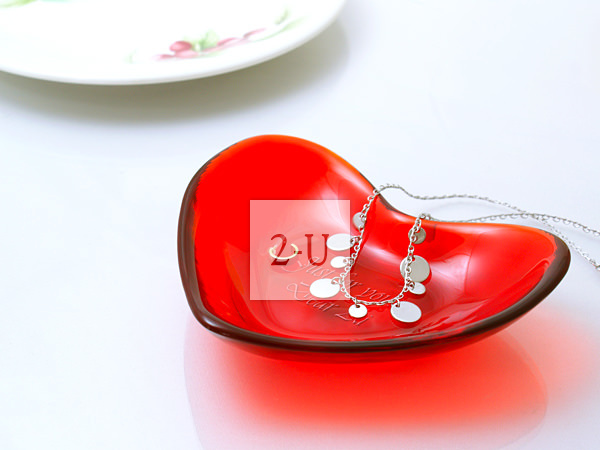 紅色心形玻璃淺碟 訂購定製的帶彫刻的具有創意的個性禮物/禮品/賀禮/紀唸品。